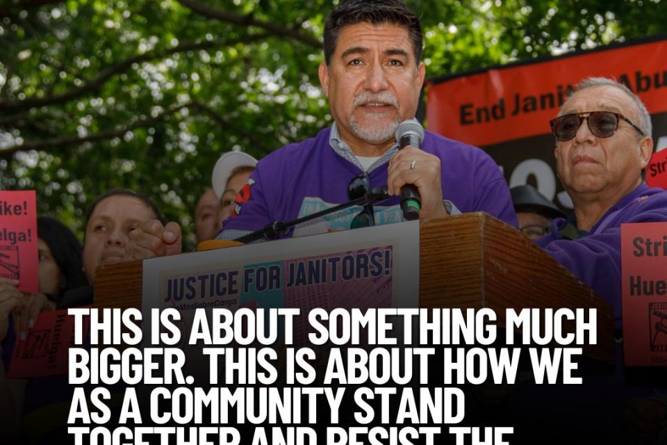 “Friday, June 6, 2025, David Huerta, president of SEIU California and SEIU United Service Workers West (USWW), was injured and unlawfully detained while exercising his First Amendment rights as an observer during a massive ICE raid in downtown Los Angeles, during which at least 44 individuals were arrested. He has been released from the hospital but currently remains in ICE custody for reasons that are unclear. His arrest reminds us of the dangers of unchecked power and the urgency of collective action.
