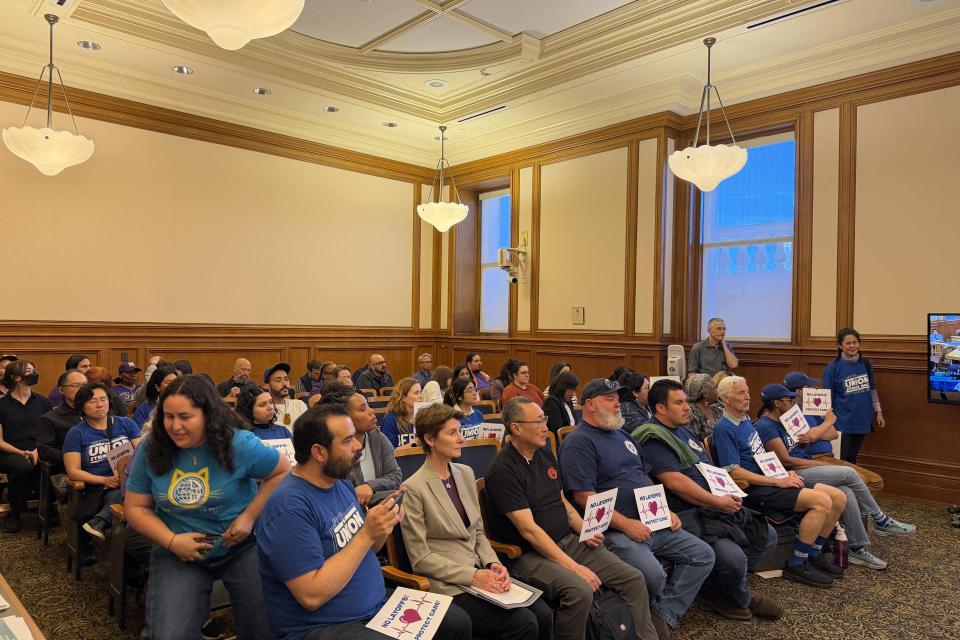 protest Mayor Lurie’s budget, which would lay off over 100 union