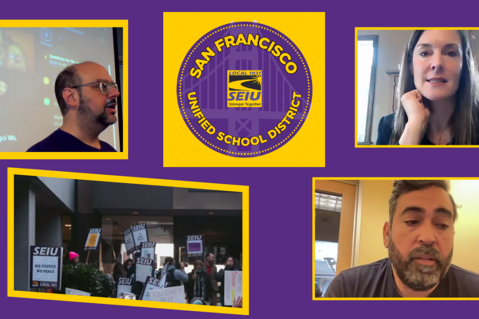 On Saturday, January 31, hundreds of SEIU 1021 members from SF Unified School District gathered, both on Zoom and in person, to learn about their right to strike, including the right to participate in a solidarity strike with educators.