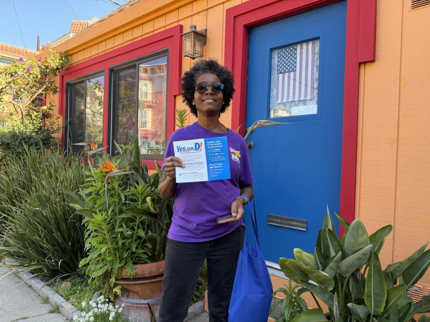 Volunteers left the rally to begin the campaign’s first canvass, knocking on doors and speaking directly with residents about why voting Yes on Prop D will help safeguard the programs and services that support San Francisco’s recovery and protect the well-being of thousands of residents.