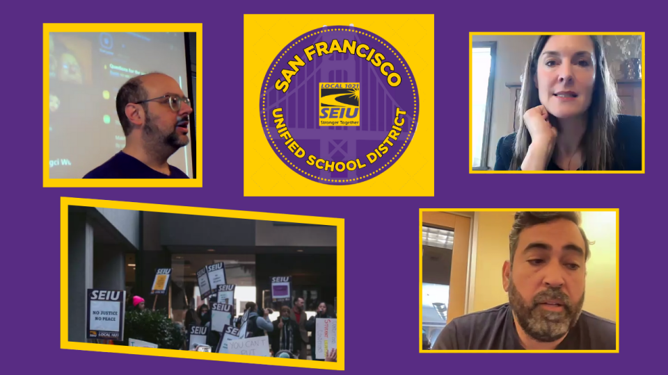On Saturday, January 31, hundreds of SEIU 1021 members from SF Unified School District gathered, both on Zoom and in person, to learn about their right to strike, including the right to participate in a solidarity strike with educators.