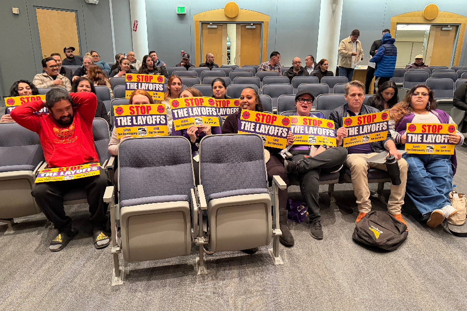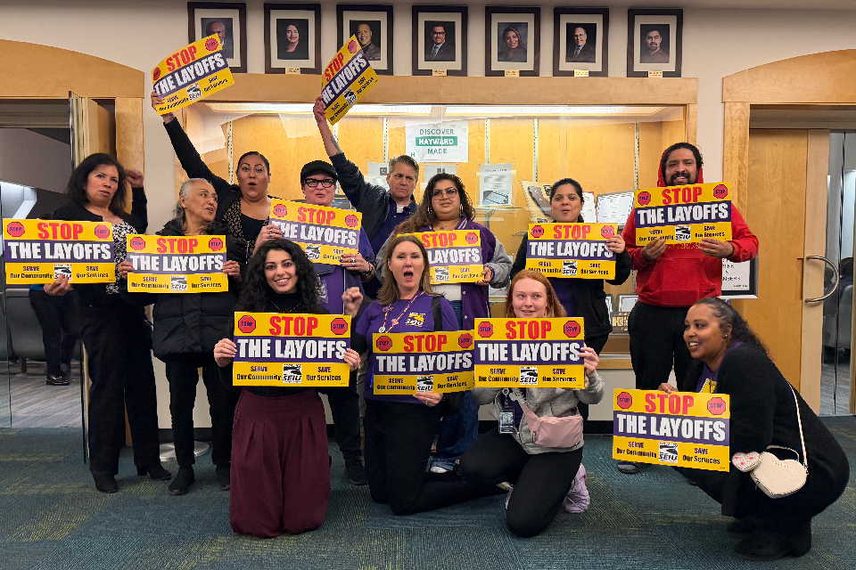 Last week, City of Hayward workers united in SEIU 1021 were out in force at the City Council meeting. Members spoke out against the cruel, unjust layoffs that are taking jobs away and hurting our community. Among the powerful speakers was Veronica Bartevian, who recently received a layoff notice while she was out of town on bereavement leave.