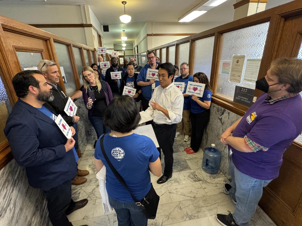 SFDPH workers deliver 1500 petition signatures to Director Daniel Tsai: No layoffs, protect care!