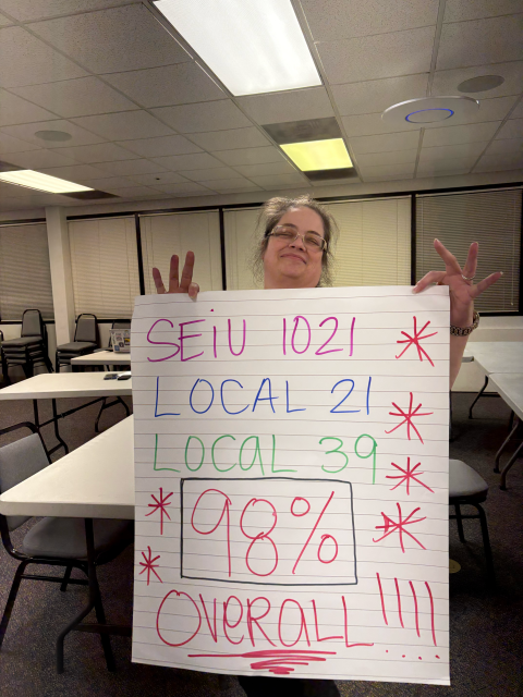 On Thursday, December 11, Solano County public servants represented by SEIU 1021, IFPTE Local 21, and IUOE Local 39 voted 98% YES to authorize a strike if necessary. Workers across Health & Social Services, Children’s Support Services, Sheriff Dispatch, mental health, public works, parks, and more sent a clear message: the County must address its staffing crisis.
