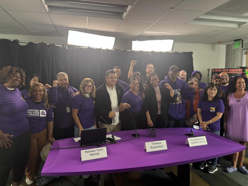 Monday, October 20, SEIU 1021’s San Francisco union hall turned into a studio for a live town hall on why it’s so important for union members and working people to vote YES on California Proposition 50. Congresswoman Lateefah Simon joined SEIU 1021 President Theresa Rutherford and Vice President of Politics Ramsés Teón-Nichols in person, while SEIU California and USWW President David Huerta and SEIU 221 President Crystal Irving joined as panelists via Zoom.
