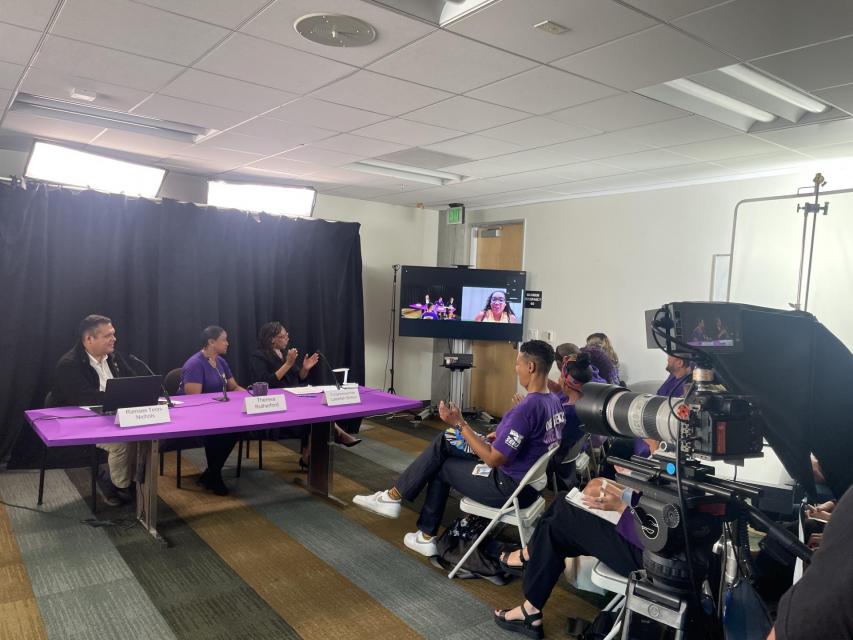 Panelists included the congresswoman, SEIU CA President David Huerta, SEIU 221 President Crystal Irving, and SEIU 1021 President Theresa Rutherford & VP of Politics Ramsés Teón-Nichols