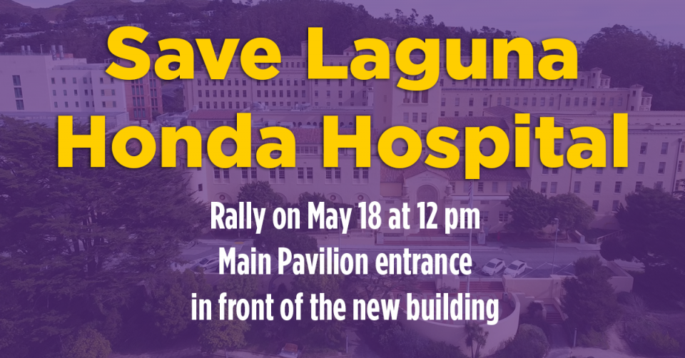 (San Francisco, Calif.) On Wednesday, May 18 frontline healthcare workers, patients, families, and community allies will stage a “Save Laguna Honda” rally outside the hospital. We will be joined by Mayor London Breed and members of the San Francisco Board of Supervisors, as well as faith and community leaders.