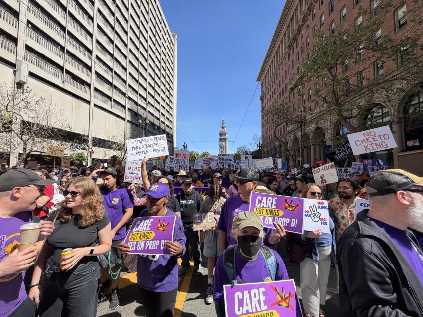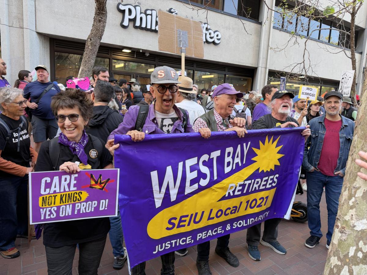 “I’ve been out here since 1968. This moment is scarier than 1968,” said SEIU 1021 member and San Francisco city worker Judy Sorro, who joined the labor contingent at the San Francisco No Kings march. “This guy in power is beyond anything I’ve ever seen before in my lifetime. It’s happening here, not in some other part of the world. I hope people wake up. I think they will.”